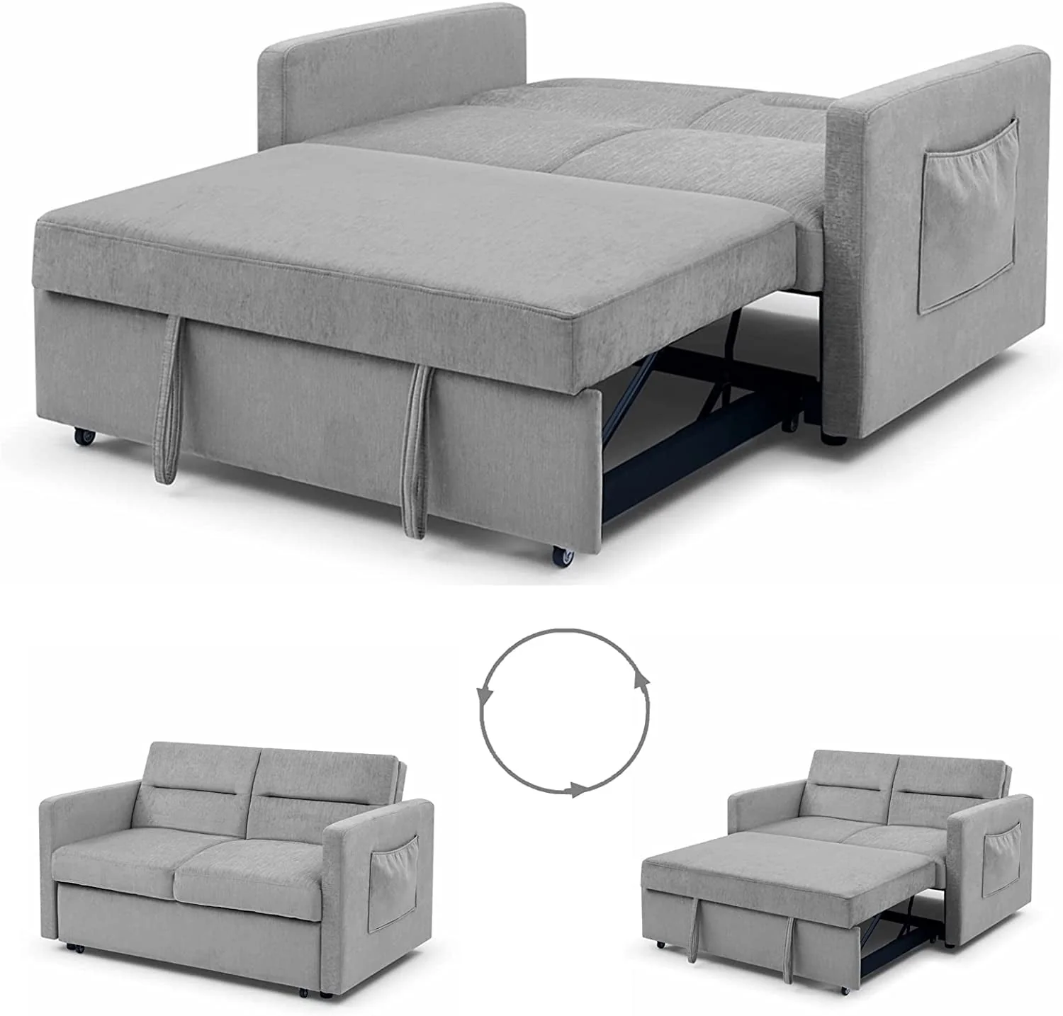 54.5" Pull Out Sofa Sleeper Couch, 3-in-1 Convertible Sleeper Sofa Bed for Living Room Apartment, Breathable Chenille Adjustable Sleeper Loveseat with Pull Out Bed and Side Pockets, Gray